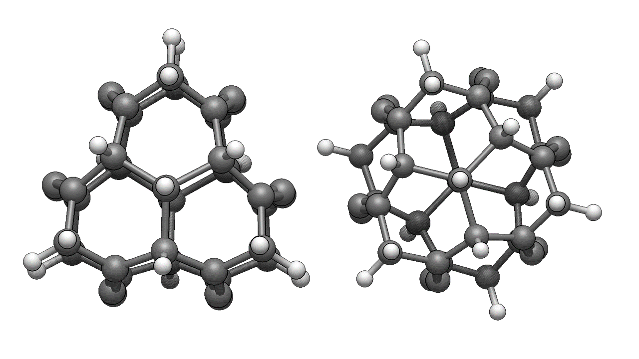 Zagrodeny6-2 zostały dodatkowo zamknięte „czapkami” metylidenowymi, to znaczy grupami CH (poziom HF/6-31G(d)/hess-plus). W tym wypadku również możliwe są dwa izomery. Ustawienie grup metylidenowych względem siebie może być naprzeciw lub naprzemianległe, jak to widać na poniższych rysunkach: